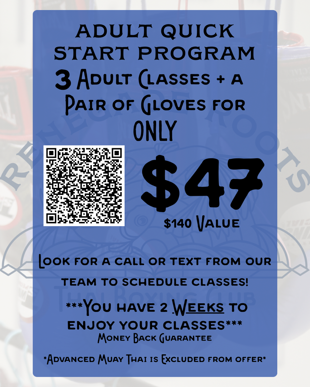 Versatile Classes: We provide adult Muay Thai, bag classes, and fitness programs for every goal.